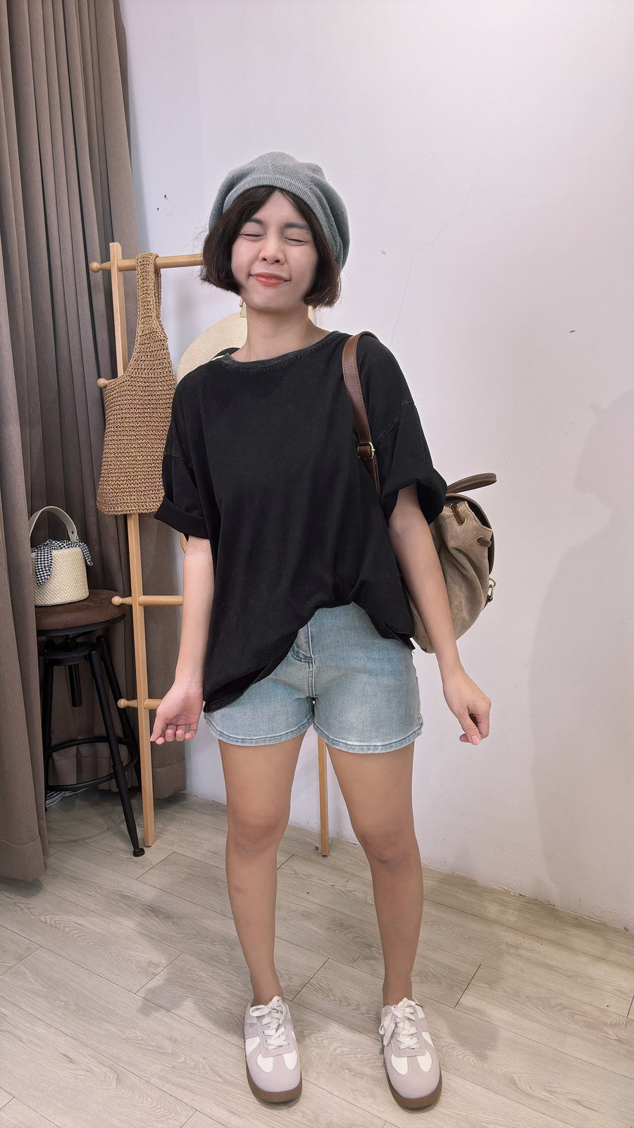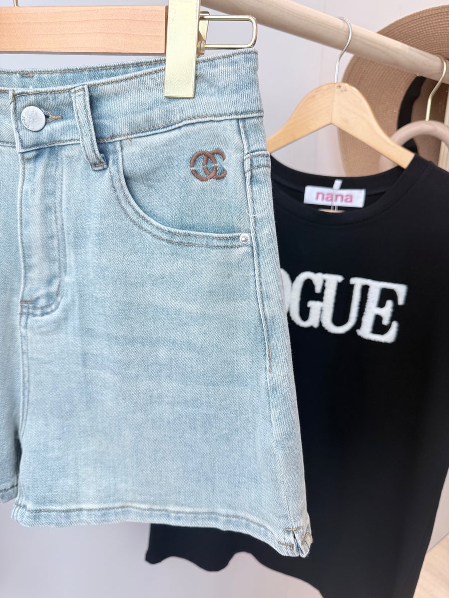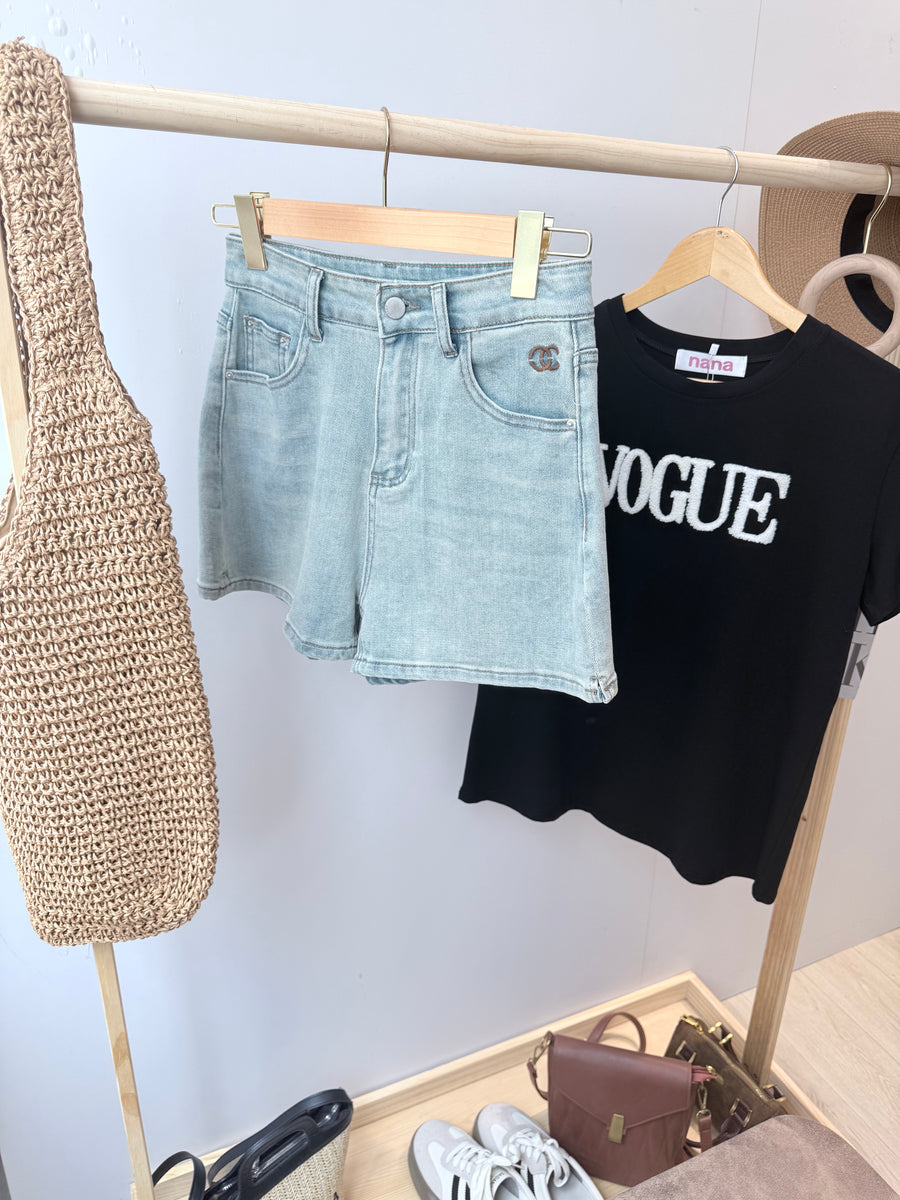 杂染浅色牛仔短裤